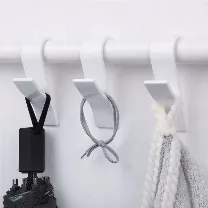 Haczyki nie wymagają skomplikowanego montażu, zatem w każdej chwili uchwyt można zdjąć, zmienić jego miejsce docelowe bądź też z łatwością dołożyć kolejny.